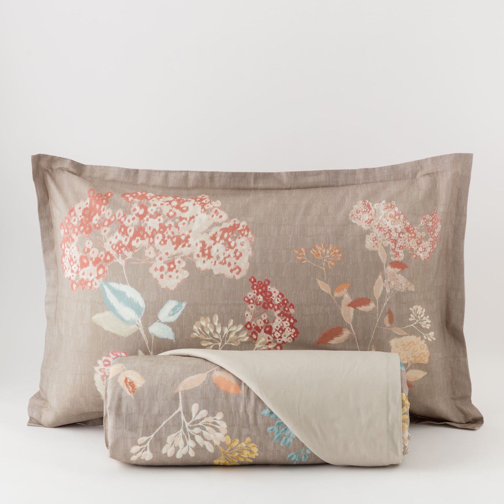 La parte superiore del sacco e delle federe è stampata, mentre il retro è in tinta unita, caratteristica che permette di conservare armonia ed equilibrio nei colori. Le varianti disponibili sono: Tortora, calda e versatile, perfetta per ambienti naturali e sofisticati; Carta da Zucchero, fresca e moderna, ideale per camere luminose e arredi contemporanei e Melograno il colore cool del momento!