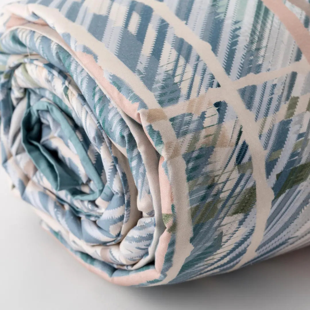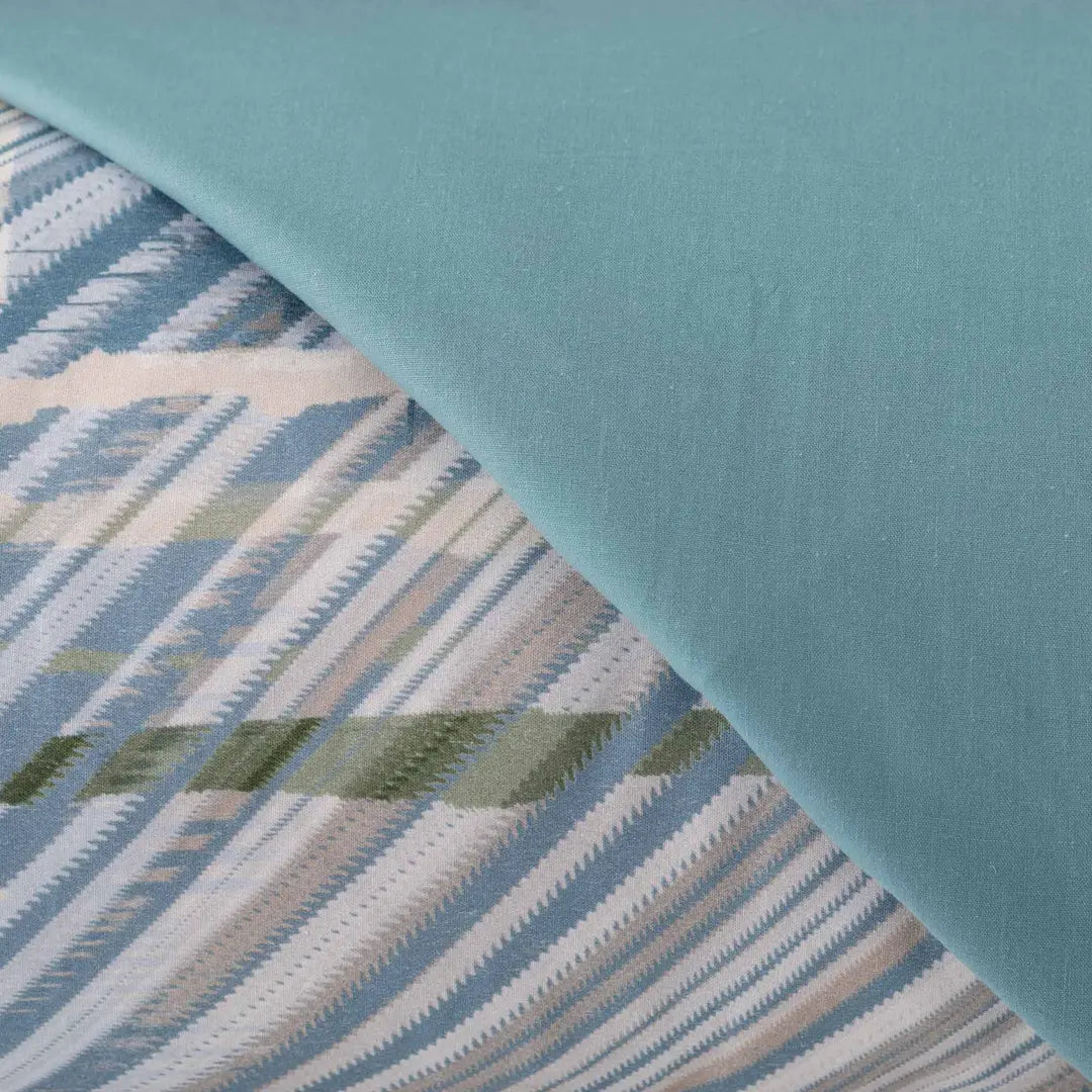 La parure copripiumino Yuta, in puro percalle di cotone, è pensata per portare nella zona notte una ventata di eleganza grafica e comfort naturale. Il design si basa su una stampa digitale ad alta risoluzione ispirata al tartan, qui rivisitato in chiave leggera e contemporanea. Le linee sottili, che si intersecano con ritmo delicato, conferiscono movimento al tessuto, creando una superficie visivamente dinamica ma al tempo stesso equilibrata.